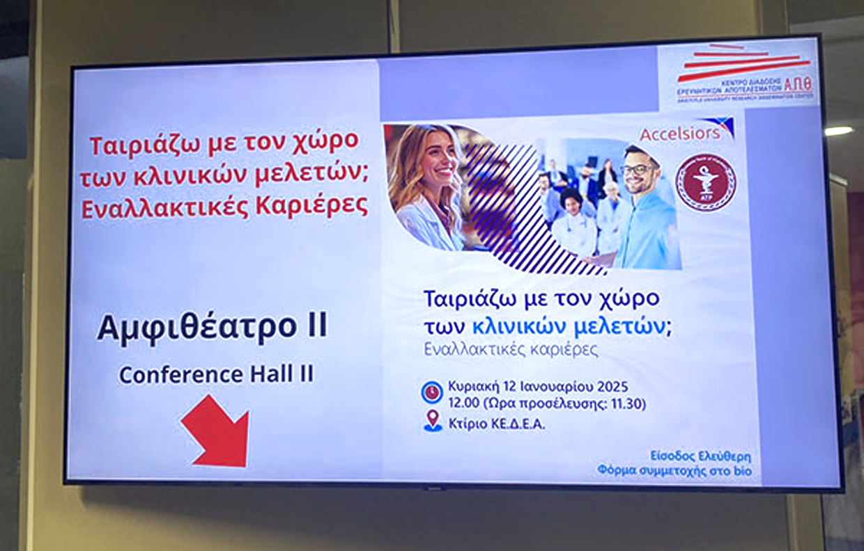 On January 12th, Accelsiors had the pleasure of co-hosting an event with Pharmacy students at the Aristotle University of Thessaloniki, Greece. Prof. Konstantino Xanthopoulos, Scientific Advisor, and Yiorgos Litos, Communication Manager, provided valuable insights into the world of clinical research.